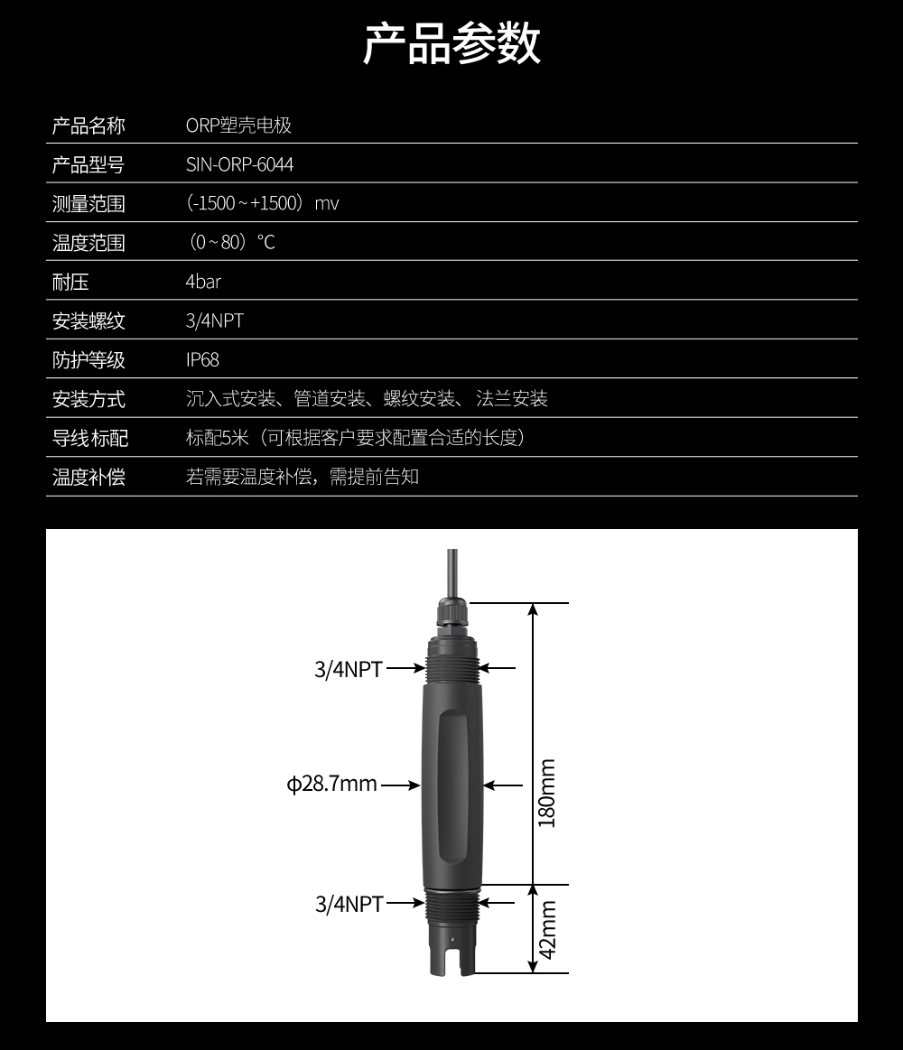 聯測SIN-ORP-6044塑殼電極_