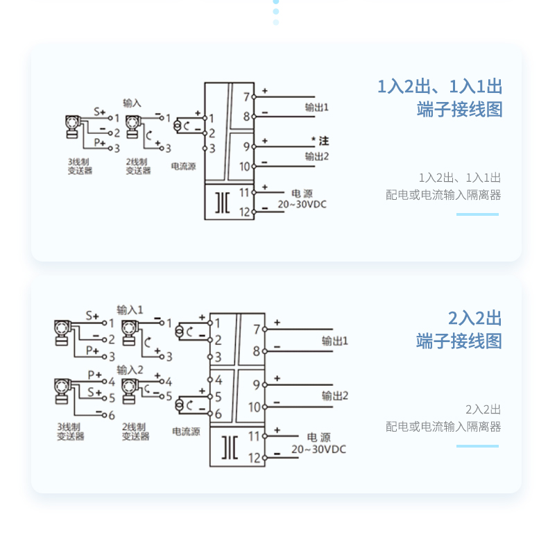 信號隔離器是一種信號隔離裝置,將輸入單路或雙路電流或電壓信號,變送輸出隔離的單路或雙路線性的電流或電壓信號,并提高輸入、輸出、電源之間的電氣隔離性能。