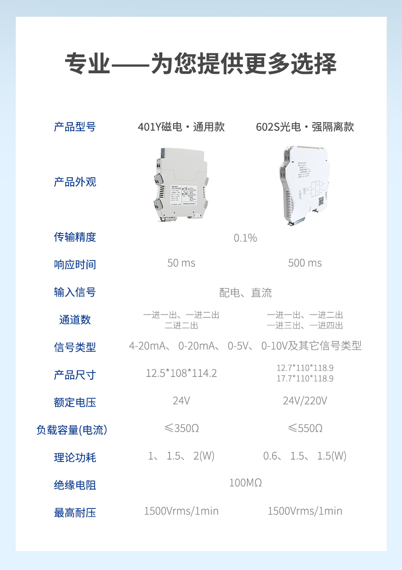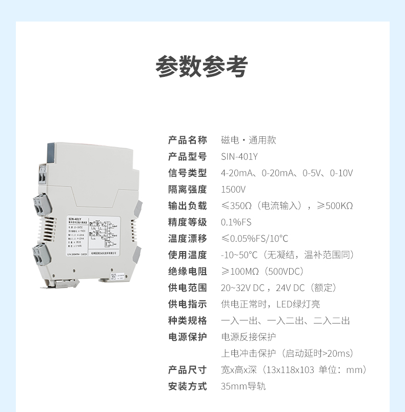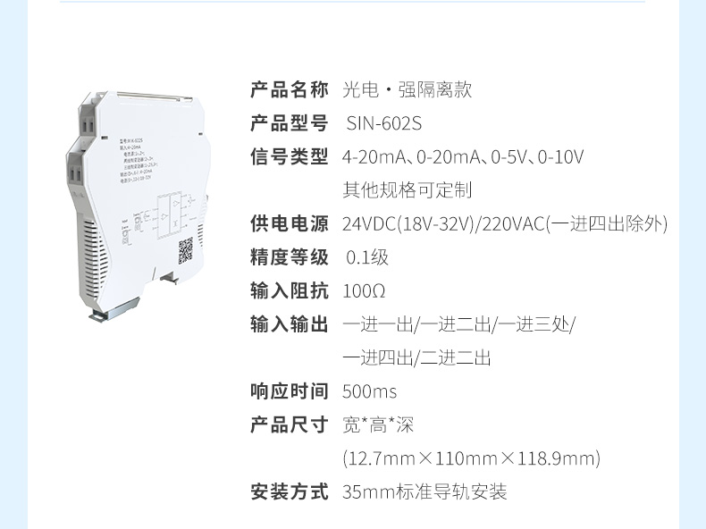 信號隔離器是一種信號隔離裝置,將輸入單路或雙路電流或電壓信號,變送輸出隔離的單路或雙路線性的電流或電壓信號,并提高輸入、輸出、電源之間的電氣隔離性能。
