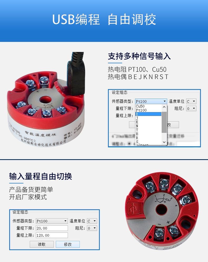 當(dāng)前位置: 首頁(yè) > 紅外溫度傳感器 → 聯(lián)測(cè)_SIN-ST500_溫度變送模塊_熱電阻/熱電偶轉(zhuǎn)4-20mA輸出_