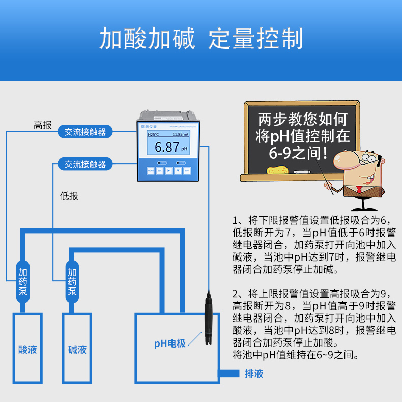 pH/ORP 控制器廣泛應用于火電、化工化肥、冶金、環保、制藥、生化、食品和自來水等行業,對溶液中 pH 值或 ORP 值和溫度連續監測。連續監測數據通過變送輸出連接記錄儀實現遠傳監控與記錄。CN5