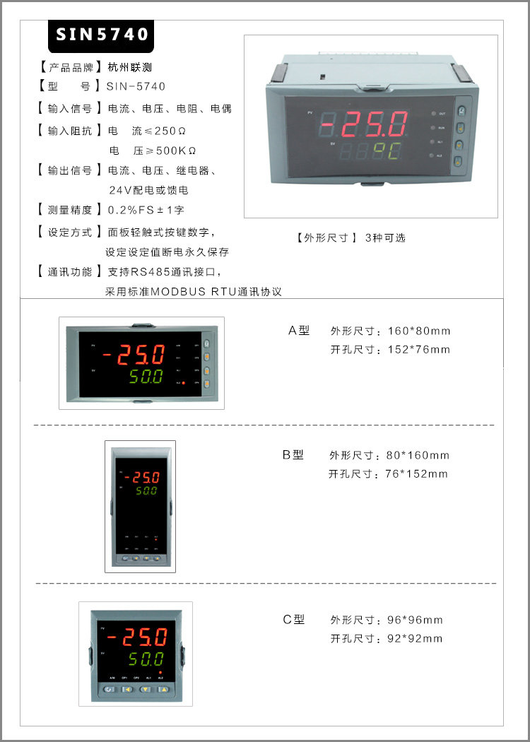 SIN-2740四回路數字顯示控制儀采用了表面貼裝工藝,全自動貼片機生產,具有很強的抗干擾能力。本儀表支持多種信號類型輸入,可與各類傳感器、變送器配套使用,實現對溫度、壓力、液位、速度、力等物理量的測量顯示,可同時顯示四路測量信號,可帶 8 路分別報警輸出或 4 路分別變送輸出功能、RS485/232 通訊等輸出功能,適用于需要進行多測量點檢測的系統。CN3