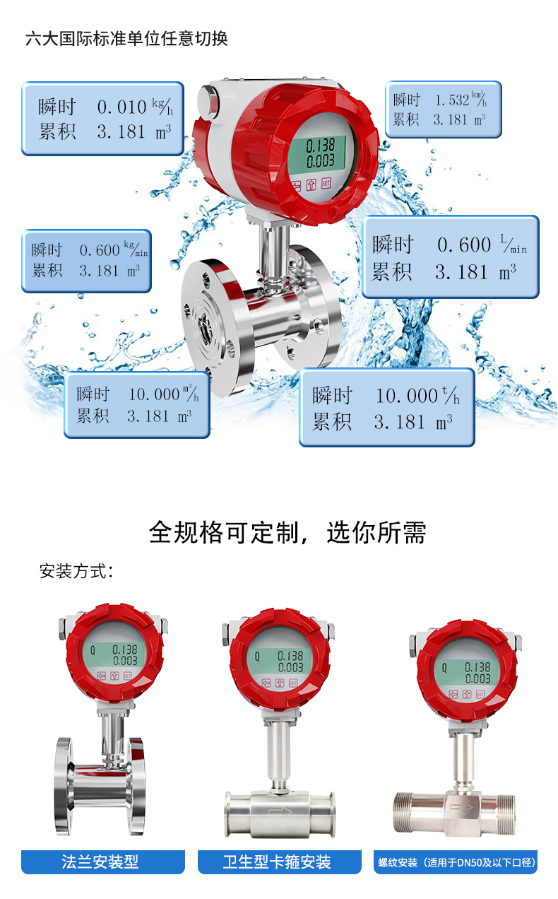 液體渦輪流量計基于力矩平衡原理,屬于速度式流量儀表。它具有準確度高、重復性好、結構簡單、壓力損失小、維修方便等優點,于測量封閉管道中低粘度液體的體積流量。在石油、化工、冶金、供水、造紙等行業中具有廣泛的應用。CN5