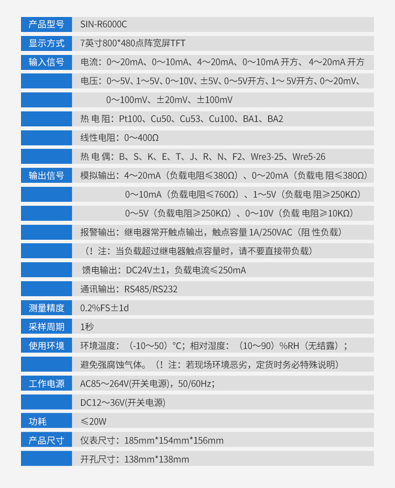 聯測_SIN-R6000C/4000C_1~48路可選_7英寸寬屏_彩色/藍屏_無紙記錄儀_溫度_壓力_多種參數_