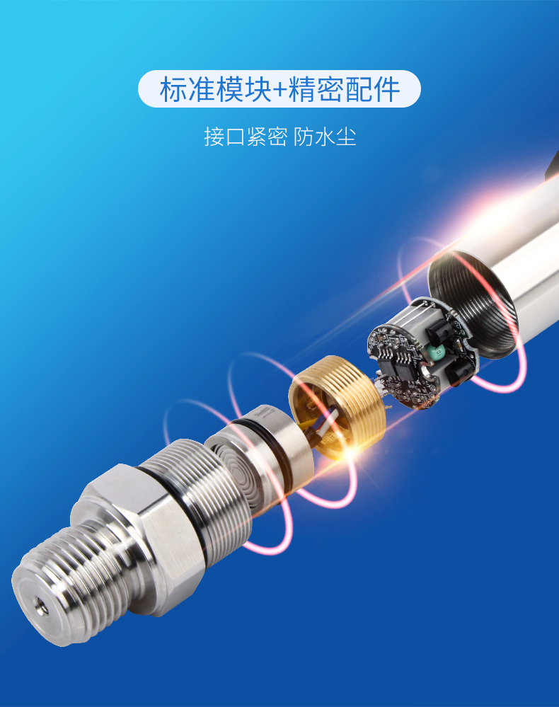 擴散硅壓力變送器選用進口高精度、高穩定性壓力 敏感芯片。敏感芯片采用先進的微機械刻蝕加工工藝, 通過在硅片上擴散四個高精度電阻,從而形成惠斯通電 橋。由于壓阻效應,四個橋臂電阻的阻值發生變化,電 橋失衡,敏感元件輸出一個對應壓力變化的電信號。輸 出的電信號通過放大和非線性矯正電路的補償,產生與 輸入壓力成線性對應關系的電壓、電流信號。CN8